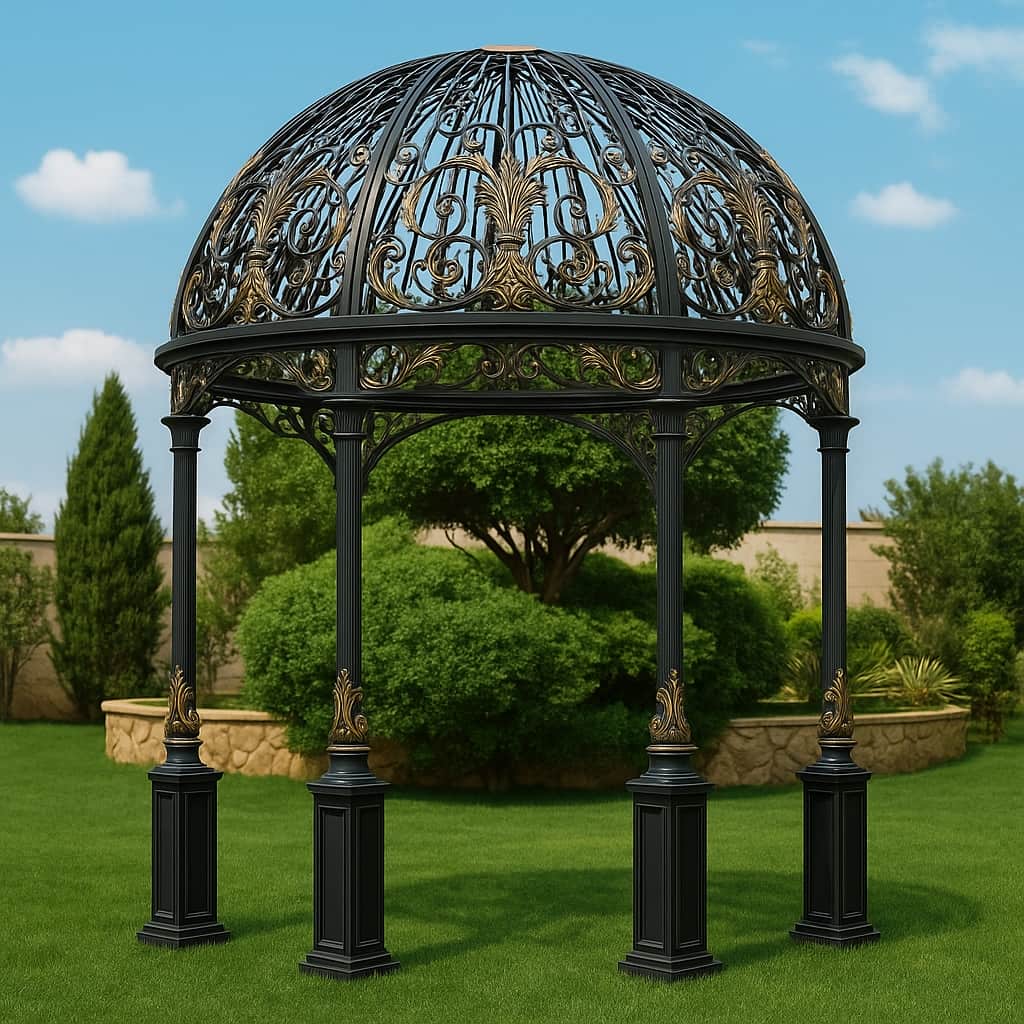 • برای متریال آلاچیق الیزه باغی از فولاد باکیفیت و قطعات فرفورژه ضخیم استفاده کنید تا استحکام سازه تضمین شود